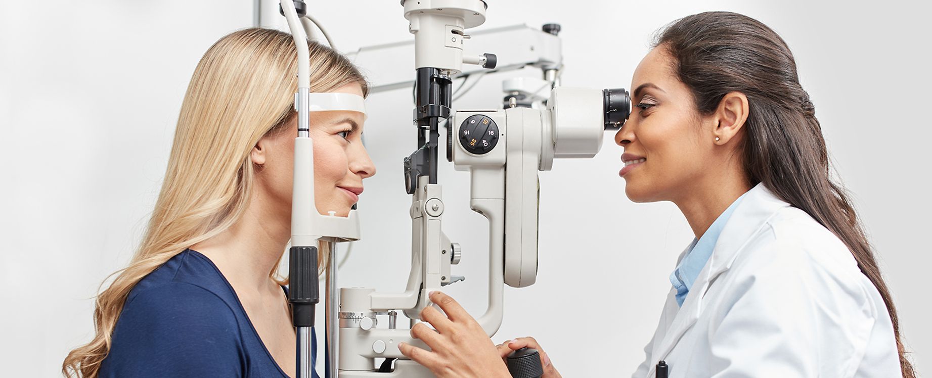 Die Augenuntersuchung besteht aus mehreren Teilen: Bei der Refraktionsbestimmung wird die Brechkraft des Auges ermittelt. Daraus geht hervor, ob bei Ihnen eine Kurz- oder Weitsichtigkeit, eine Hornhautverkrümmung oder aber Alterssichtigkeit vorliegt. Im Anschluss erfolgt eine Hornhaut-Radien-Vermessung, die darüber Aufschluss gibt, ob Ihre Hornhaut eher steil oder flach verläuft – diese Information ist wichtig, damit die Kontaktlinse gut am Auge sitzt. Durch den Spaltlampenbefund am Ende der Untersuchung wird festgestellt, wie sich Ihr Tränenfilm zusammensetzt und ob sich Narben auf eurer Hornhaut befinden. Dieser Schritt ist wichtig für die Wahl des Kontaktlinsenmaterials.
